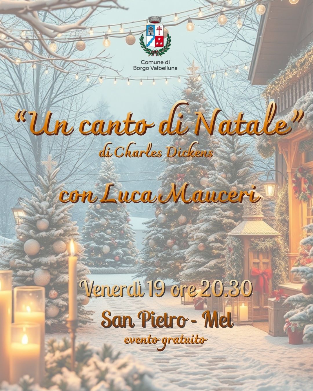 "Un canto di Natale", spettacolo con Luca Mauceri, attore teatrale, che ci farà vivere questo bellissimo racconto senza tempo di Dickens.